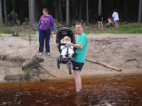 The trail wandered through the forest with more feeble attempts to get shoes wet, a long back check led to a some bad language and the odd curse but the beer wagon was calling so luckily the trail was leading to the chariots. On the way back to the chariots I spotted two black Scottish mutts heading in the opposite direction, right into the path of the other two Scottish mutts, confusion was in the offing. In the meantime gutterguts was playing shrek with Zuma